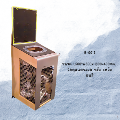รับผลิตถังขยะสวนสาธารณะ เป็นถังขยะทิ้งกระป๋องหรือทิ้งเศษโลหะ ตัวถังทำจากเหล็กอบสี หรือ สแตนเลสอบสี รอบตัวถังขยะเป็นตาข่ายสามารถมองเห็นขยะด้านในได้