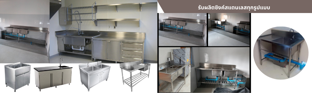 รับผลิตตู้ซิงค์สแตนเลส ตู้เคาว์เตอร์ล้างมือ อ่างซิงค์สแตนเลส 1 หลุม 2 หลุม 3 หลุม หรือ 4 หลุม ผลิตตามแบบ สแตนเลสเกรด 304 เป็นโรงงานผลิตโดยตรง