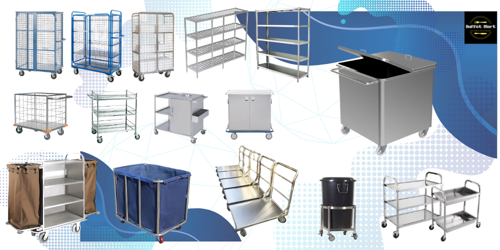 รถเข็นสแตนเลส 2 ชั้นมีกันตก มือจับเข็นอยู่ฝั่งเดียวเป็นท่อกลมสแตนเลส ชั้นรถเข็นสแตนเลสทั้ง 2 ชั้น ขาท่อกลมสแตนเลสพร้อมล้อ 4 ล้อ รับผลิตตามแบบ